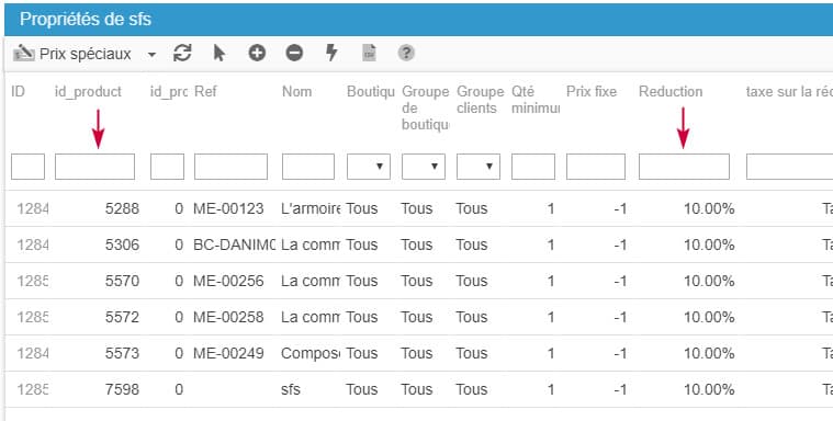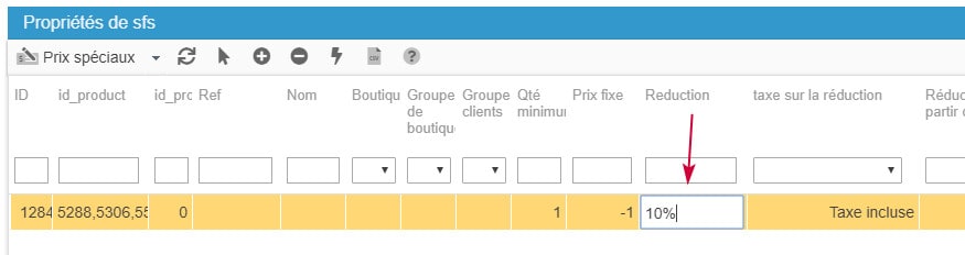 Affichez ensuite la grille des prix spéciaux depuis la colonne des Propriétés.