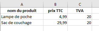 Si vous souhaitez importer le prix TTC, il faut impérativement inclure la TVA dans votre fichier :