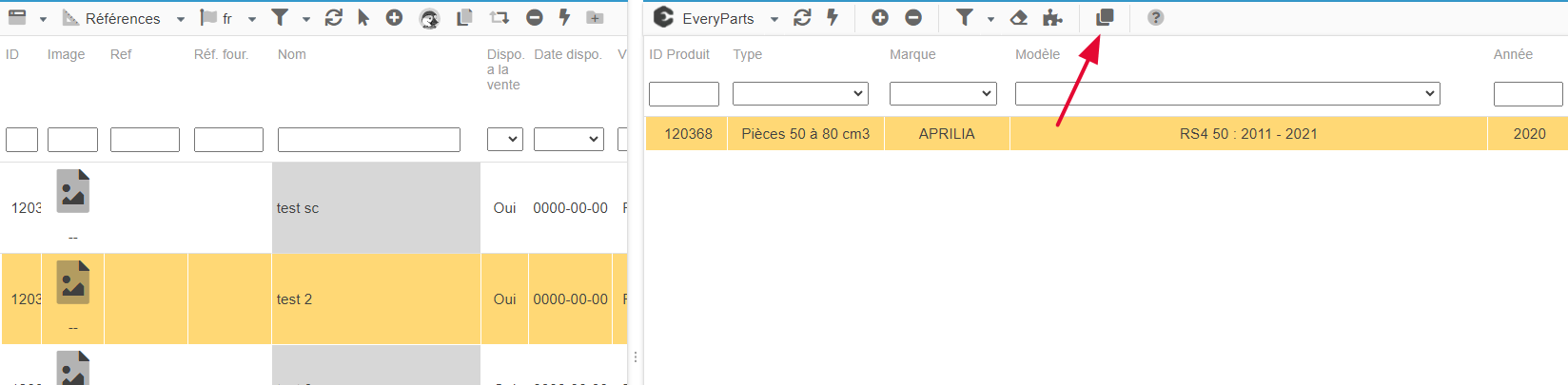 La propriété EveryParts vous permet de dupliquer une compatibilité déjà présente sur un produit afin d'en créer une nouvelle, sur laquelle l'année sera différente.