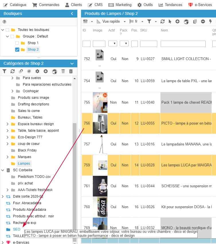 Lorsque vous créez des segments manuels, vous pouvez ensuite glisser/déposer les éléments (produits/commandes/clients) dans ces segments