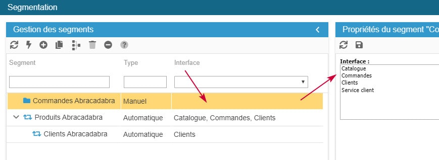 Vérifiez que l'interface en question est bien associée à ce segment, et si ce n'est pas le cas, alors sélectionnez et enregistrez dans la partie de droite.