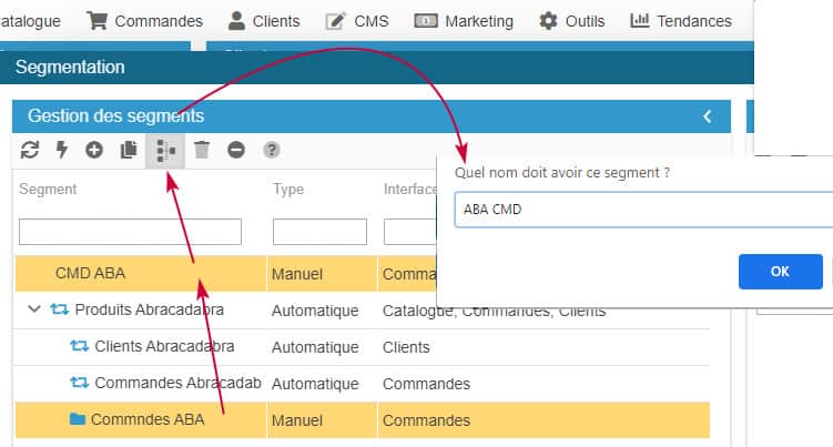 Saisissez le nom du nouveau segment qui va être créé et validez.