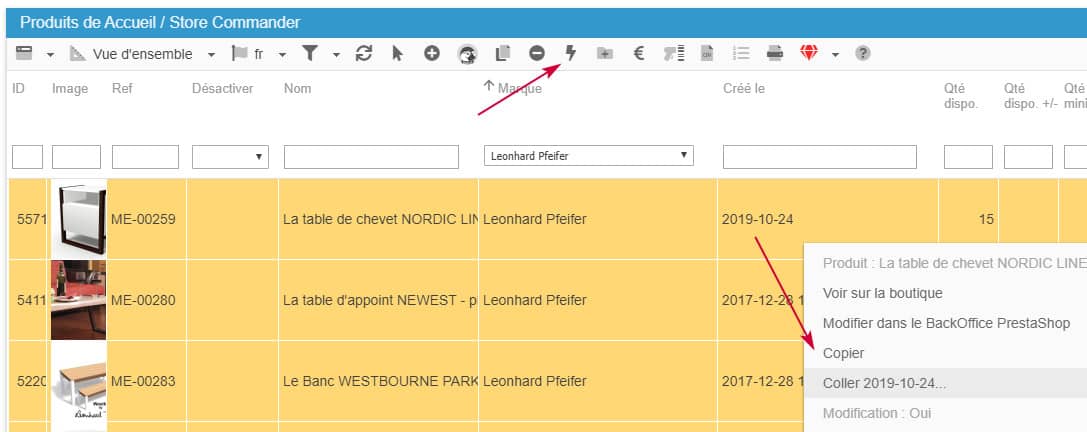 Puis utilisez la fonction copier/coller de Store Commander pour appliquer cette date à tous les autres produits en juste quelques clics.